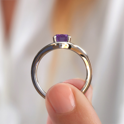 This platinum ring is called Femke OVL and is set with 8x6 mm amethyst. Does your girlfriend fancy exclusive jewellery? Or would you like to show her that she deserves the finest jewellery? This platinum ring is pure craftsmanship, love and passion