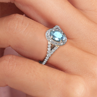 The ring shown above is called the Pamela OVL. We call this type of ring a halo ring because it has one centre gemstone and a band that is also pave set with gemstones. The platinum engagement ring is set with a oval 7x5 mm blue lab grown diamond centre stone and the band is pave set with lab-grown diamonds. What makes this luxury platinum halo ring special are the smaller sized stones embracing the centre stone. This gorgeous engagement ring is called a halo ring because the smaller gemstones give the centre stone a halo of surrounding light. In order for the smaller stones to enhance the centre stone, they have to be placed so there is no interference of light. And that's when our expert goldsmiths come in. Each individual stone is carefully set in the ring by hand. During manufacturing, light fall is constantly monitored to make sure the special halo is still visible. In the end you get a unique engagement ring, with a blue lab grown diamond of your choosing at its centre. You can imagine the effect of a ring of such significance when you give it to her on her special day to shine. By using our modern techniques, we can design and customize the finest quality jewels with the utmost care for you. Our engagement rings are always priced 30 percent lower than other jewellers. We make engagement rings to order so we don't have to maintain a large stock. If you have a certain budget, we are more than happy to advice you accordingly.Our team adds new designs to our online collection daily. Our designers and goldsmiths work together in creating the best design. We strive to offer a diverse collection of jewels. Perhaps you have a specific jewel design in mind. One you came across somewhere. Please contact us for a free consultation. We will make you an offer, based on a fair price/ quality ratio, that will baffle you.To make it easier for you, we offer a 30 day return policy. Check our terms and conditions.