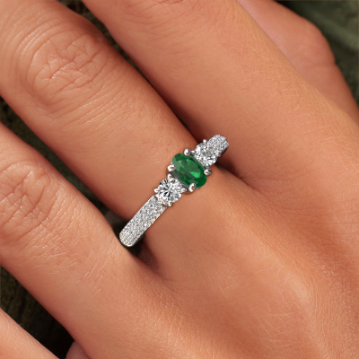This platinum ring is called Marielle OVL and is set with 6.5x4.5 mm emerald. Does your girlfriend fancy exclusive jewellery? Or would you like to show her that she deserves the finest jewellery? This platinum ring is pure craftsmanship, love and passion combined with the latest techniques coming together in perfect harmony. It requires a keen eye, patience and a skilful hand to mould this ring into perfection. Just the job for our expert goldsmith! The emerald set gemstones gives this platinum ring an extra glamorous appearance. Customize the style of the pavé engagement ring to her liking with a wide variety of precious metals and gemstones which you select. That is how you create a unique ring for the most exclusive woman in your life! This jewel is made just for you by our master goldsmiths in our own studio.Are you on a budget? Please feel free to contact us, so we can go discuss your options. We offer our engagement rings at guaranteed best price, because we make them to order. You won't find such a price anywhere else!Have you found a specific engagement ring somewhere which you would like to give to your loved one? Please feel free to express your wishes to our jewel designers because we would be honoured to turn your design into a exclusive engagement ring. You can follow the development of your ring design because we use 3D drawings. This gives you a realistic preview of how your design will look. You can also preorder a dummy. A dummy is a plastic ring, which can be shaped according your ring design. You can try it on and check if its width and size are suitable for you. We will gladly send you a non-binding offer, based on a fair price/ quality ratio. It will amaze you, considering the quality of the ring and gemstones.To make it easier for you, we offer a 30 day return policy. Check our terms and conditions.