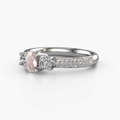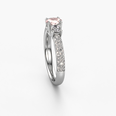 This platinum ring is called Marielle OVL and is set with 6.5x4.5 mm morganite champagne. Does your girlfriend fancy exclusive jewellery? Or would you like to show her that she deserves the finest jewellery? This platinum ring is pure craftsmanship, love and passion combined with the latest techniques coming together in perfect harmony. It requires a keen eye, patience and a skilful hand to mould this ring into perfection. Just the job for our expert goldsmith! The morganite champagne set gemstones gives this platinum ring an extra glamorous appearance. Customize the style of the pavé engagement ring to her liking with a wide variety of precious metals and gemstones which you select. That is how you create a unique ring for the most exclusive woman in your life! This jewel is made just for you by our master goldsmiths in our own studio.Are you on a budget? Please feel free to contact us, so we can go discuss your options. We offer our engagement rings at guaranteed best price, because we make them to order. You won't find such a price anywhere else!Have you found a specific engagement ring somewhere which you would like to give to your loved one? Please feel free to express your wishes to our jewel designers because we would be honoured to turn your design into a exclusive engagement ring. You can follow the development of your ring design because we use 3D drawings. This gives you a realistic preview of how your design will look. You can also preorder a dummy. A dummy is a plastic ring, which can be shaped according your ring design. You can try it on and check if its width and size are suitable for you. We will gladly send you a non-binding offer, based on a fair price/ quality ratio. It will amaze you, considering the quality of the ring and gemstones.To make it easier for you, we offer a 30 day return policy. Check our terms and conditions.