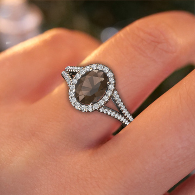 This platinum ring is called Verla ovl 2 and is set with 8x6 mm smokey quartz. Does your girlfriend fancy exclusive jewellery? Or would you like to show her that she deserves the finest jewellery? This platinum ring is pure craftsmanship, love and passion combined with the latest techniques coming together in perfect harmony. It requires a keen eye, patience and a skilful hand to mould this ring into perfection. Just the job for our expert goldsmith! The smokey quartz set gemstones gives this platinum ring an extra glamorous appearance. Customize the style of the split band engagement ring to her liking with a wide variety of precious metals and gemstones which you select. That is how you create a unique ring for the most exclusive woman in your life! This jewel is made by a team of passionate goldsmiths and jewel designers. This will make your crown jewel truly eye-catching.By using our modern techniques, we can design and customize the finest quality jewels with the utmost care for you. Our engagement rings are always priced 30 percent lower than other jewellers. We make engagement rings to order so we don't have to maintain a large stock. If you have a certain budget, we are more than happy to advice you accordingly.Our team adds new designs to our online collection daily. Our designers and goldsmiths work together in creating the best design. We strive to offer a diverse collection of jewels. Perhaps you have a specific jewel design in mind. One you came across somewhere. Please contact us for a free consultation. We will make you an offer, based on a fair price/ quality ratio, that will baffle you.To make it easier for you, we offer a 30 day return policy. Check our terms and conditions.