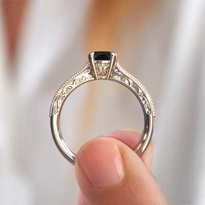 This platinum ring is called Shonta CUS and is set with 1.284 crt black diamond. This filigree platinum engagement ring is a true work of art! A beautifully adorned design of intricate wires. With dedication, patience and the utmost precision, our expert goldsmith will design a ring just for you. The adornment of small wiring is crafted to perfection by hand. It's a lengthy process which includes welding, crafting and polishing until our Goldsmiths are completely satisfied with the result: a perfect eye-catching ring that makes her shine with delight. Therefore the vintage filigree engagement ring is an extraordinary gift to bestow upon the love of your life. A handmade one-of-a-kind personalized ring, to be given to that special someone on that special moment when you pop the question. Isn't that wonderful? This piece of jewellery is created to add sparkle to your finger, each jewel is lovingly made by hand by our goldsmiths.After receiving your order, our goldsmiths will start the creative process of making your Shonta CUS engagement ring. We don't keep stock. This is advantageous because these costs will not be passed on to you. Therefore, we can offer jewellery at exceptionally low prices.Our designers and goldsmiths work together each day, creating new jewels. Perhaps you have found a nice vintage engagement ring somewhere, which can be used to customize your unique ring. Please feel free to contact us. We will make you an offer, based on a fair price/ quality ratio, which will amaze you.To make it easier for you, we offer a 30 day return policy. Check our terms and conditions.