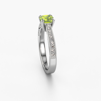 This platinum ring is called Shonta CUS and is set with 5.5 mm peridot. This filigree platinum engagement ring is a true work of art! A beautifully adorned design of intricate wires. With dedication, patience and the utmost precision, our expert goldsmith will design a ring just for you. The adornment of small wiring is crafted to perfection by hand. It's a lengthy process which includes welding, crafting and polishing until our Goldsmiths are completely satisfied with the result: a perfect eye-catching ring that makes her shine with delight. Therefore the vintage filigree engagement ring is an extraordinary gift to bestow upon the love of your life. A handmade one-of-a-kind personalized ring, to be given to that special someone on that special moment when you pop the question. Isn't that wonderful? This piece of jewellery is created to add sparkle to your finger, each jewel is lovingly made by hand by our goldsmiths.After receiving your order, our goldsmiths will start the creative process of making your Shonta CUS engagement ring. We don't keep stock. This is advantageous because these costs will not be passed on to you. Therefore, we can offer jewellery at exceptionally low prices.Our designers and goldsmiths work together each day, creating new jewels. Perhaps you have found a nice vintage engagement ring somewhere, which can be used to customize your unique ring. Please feel free to contact us. We will make you an offer, based on a fair price/ quality ratio, which will amaze you.To make it easier for you, we offer a 30 day return policy. Check our terms and conditions.