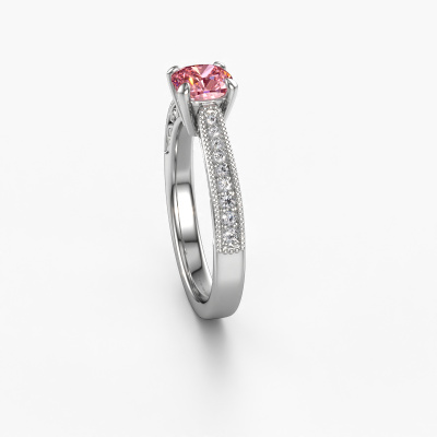 This platinum ring is called Shonta CUS and is set with 5.5 mm pink lab grown diamond. This filigree platinum engagement ring is a true work of art! A beautifully adorned design of intricate wires. With dedication, patience and the utmost precision, our expert goldsmith will design a ring just for you. The adornment of small wiring is crafted to perfection by hand. It's a lengthy process which includes welding, crafting and polishing until our Goldsmiths are completely satisfied with the result: a perfect eye-catching ring that makes her shine with delight. Therefore the vintage filigree engagement ring is an extraordinary gift to bestow upon the love of your life. A handmade one-of-a-kind personalized ring, to be given to that special someone on that special moment when you pop the question. Isn't that wonderful? This piece of jewellery is created to add sparkle to your finger, each jewel is lovingly made by hand by our goldsmiths.After receiving your order, our goldsmiths will start the creative process of making your Shonta CUS engagement ring. We don't keep stock. This is advantageous because these costs will not be passed on to you. Therefore, we can offer jewellery at exceptionally low prices.Our designers and goldsmiths work together each day, creating new jewels. Perhaps you have found a nice vintage engagement ring somewhere, which can be used to customize your unique ring. Please feel free to contact us. We will make you an offer, based on a fair price/ quality ratio, which will amaze you.To make it easier for you, we offer a 30 day return policy. Check our terms and conditions.