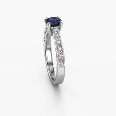 This platinum ring is called Shonta CUS and is set with 5.5 mm sapphire. This filigree platinum engagement ring is a true work of art! A beautifully adorned design of intricate wires. With dedication, patience and the utmost precision, our expert goldsmith will design a ring just for you. The adornment of small wiring is crafted to perfection by hand. It's a lengthy process which includes welding, crafting and polishing until our Goldsmiths are completely satisfied with the result: a perfect eye-catching ring that makes her shine with delight. Therefore the vintage filigree engagement ring is an extraordinary gift to bestow upon the love of your life. A handmade one-of-a-kind personalized ring, to be given to that special someone on that special moment when you pop the question. Isn't that wonderful? This piece of jewellery is created to add sparkle to your finger, each jewel is lovingly made by hand by our goldsmiths.After receiving your order, our goldsmiths will start the creative process of making your Shonta CUS engagement ring. We don't keep stock. This is advantageous because these costs will not be passed on to you. Therefore, we can offer jewellery at exceptionally low prices.Our designers and goldsmiths work together each day, creating new jewels. Perhaps you have found a nice vintage engagement ring somewhere, which can be used to customize your unique ring. Please feel free to contact us. We will make you an offer, based on a fair price/ quality ratio, which will amaze you.To make it easier for you, we offer a 30 day return policy. Check our terms and conditions.