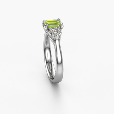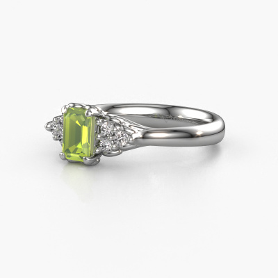 This platinum ring is called Myrna EME and is set with 6x4 mm peridot. This filigree platinum engagement ring is a true work of art! A beautifully adorned design of intricate wires. With dedication, patience and the utmost precision, our expert goldsmith will design a ring just for you. The adornment of small wiring is crafted to perfection by hand. It's a lengthy process which includes welding, crafting and polishing until our Goldsmiths are completely satisfied with the result: a perfect eye-catching ring that makes her shine with delight. Therefore the vintage filigree engagement ring is an extraordinary gift to bestow upon the love of your life. A handmade one-of-a-kind personalized ring, to be given to that special someone on that special moment when you pop the question. Isn't that wonderful? This piece of jewellery is unique in every way! Simply customize to your likingBy using our modern techniques, we can design and customize the finest quality jewels with the utmost care for you. Our engagement rings are always priced 30 percent lower than other jewellers. We make engagement rings to order so we don't have to maintain a large stock. If you have a certain budget, we are more than happy to advice you accordingly.Have you found a specific engagement ring somewhere which you would like to give to your loved one? Please feel free to express your wishes to our jewel designers because we would be honoured to turn your design into a vintage engagement ring. You can follow the development of your ring design because we use 3D drawings. This gives you a realistic preview of how your design will look. You can also preorder a dummy. A dummy is a plastic ring, which can be shaped according your ring design. You can try it on and check if its width and size are suitable for you. We will gladly send you a non-binding offer, based on a fair price/ quality ratio. It will amaze you, considering the quality of the ring and gemstones.To make it easier for you, we offer a 30 day return policy. Check our terms and conditions.