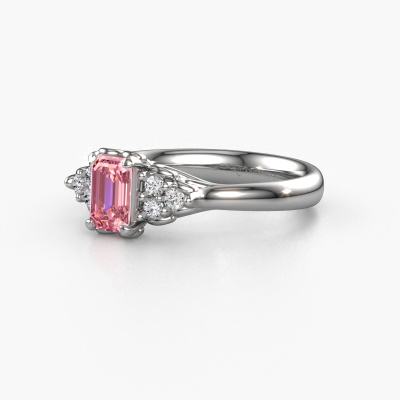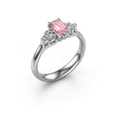 This platinum ring is called Myrna EME and is set with 6x4 mm pink lab grown diamond. This filigree platinum engagement ring is a true work of art! A beautifully adorned design of intricate wires. With dedication, patience and the utmost precision, our expert goldsmith will design a ring just for you. The adornment of small wiring is crafted to perfection by hand. It's a lengthy process which includes welding, crafting and polishing until our Goldsmiths are completely satisfied with the result: a perfect eye-catching ring that makes her shine with delight. Therefore the vintage filigree engagement ring is an extraordinary gift to bestow upon the love of your life. A handmade one-of-a-kind personalized ring, to be given to that special someone on that special moment when you pop the question. Isn't that wonderful? This piece of jewellery is unique in every way! Simply customize to your likingBy using our modern techniques, we can design and customize the finest quality jewels with the utmost care for you. Our engagement rings are always priced 30 percent lower than other jewellers. We make engagement rings to order so we don't have to maintain a large stock. If you have a certain budget, we are more than happy to advice you accordingly.Have you found a specific engagement ring somewhere which you would like to give to your loved one? Please feel free to express your wishes to our jewel designers because we would be honoured to turn your design into a vintage engagement ring. You can follow the development of your ring design because we use 3D drawings. This gives you a realistic preview of how your design will look. You can also preorder a dummy. A dummy is a plastic ring, which can be shaped according your ring design. You can try it on and check if its width and size are suitable for you. We will gladly send you a non-binding offer, based on a fair price/ quality ratio. It will amaze you, considering the quality of the ring and gemstones.To make it easier for you, we offer a 30 day return policy. Check our terms and conditions.