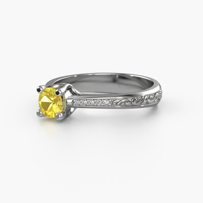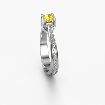 This platinum ring is called Mei and is set with yellow sapphire. An extraordinary platinum vintage ring. One that will surely make the love of your life shine like a diamond! That is what we hope to achieve. This Celtic engagement ring is set with exquisite yellow sapphire. Whichever gemstone you choose from our selection, is up to you. The gemstone is selected with great care because we believe your engagement ring must be adorned with nothing but the most beautiful gemstone. Wouldn't you agree? Our expert goldsmith will design your ring in our own artisan studio, where the yellow sapphire will be set with great precision. The ring will then be polished till it is absolutely perfect. Nothing but the best for the love of your life! This jewel is made just for you, with attention to detail and design.Are you on a budget? Please feel free to contact us, so we can go discuss your options. We offer our engagement rings at guaranteed best price, because we make them to order. You won't find such a price anywhere else!Our team adds new designs to our online collection daily. Our designers and goldsmiths work together in creating the best design. We strive to offer a diverse collection of jewels. Perhaps you have a specific jewel design in mind. One you came across somewhere. Please contact us for a free consultation. We will make you an offer, based on a fair price/ quality ratio, that will baffle you.To make it easier for you, we offer a 30 day return policy. Check our terms and conditions.