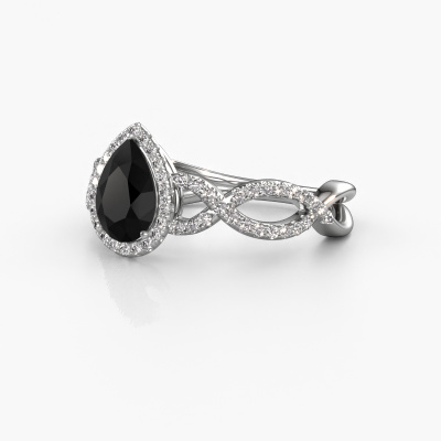 This platinum ring is called Dionne pear and is set with 1.34 crt black diamond. Does your girlfriend fancy exclusive jewellery? Or would you like to show her that she deserves the finest jewellery? This platinum ring is pure craftsmanship, love and passion combined with the latest techniques coming together in perfect harmony. It requires a keen eye, patience and a skilful hand to mould this ring into perfection. Just the job for our expert goldsmith! The black diamonds set gemstones gives this platinum ring an extra glamorous appearance. Customize the style of the twist engagement ring to her liking with a wide variety of precious metals and gemstones which you select. That is how you create a unique ring for the most exclusive woman in your life! This jewel is created to add sparkle to your finger, each jewel is lovingly made by hand by our goldsmiths.Are you on a budget? Please feel free to contact us, so we can go discuss your options. We offer our engagement rings at guaranteed best price, because we make them to order. You won't find such a price anywhere else!Different styles of new rings are made daily by our team. Perhaps you have found a pavé solitaire engagement ring somewhere. One you would like to give to your loved one. Please feel free to share your thoughts and design with our jewel designers. We would love to turn your design into a exclusive engagement ring. You can follow the development of your ring design because we use very detailed 3D drawings. On top of that, you can order a dummy of the design. A dummy is a plastic ring, which can be shaped according your ring design. You can try it on and check if the engagement ring is up to standard. We will gladly send you a non-binding offer, based on a fair price/ quality ratio. The offer will baffle you, considering the quality of the ring and gemstones.To make it easier for you, we offer a 30 day return policy. Check our terms and conditions.