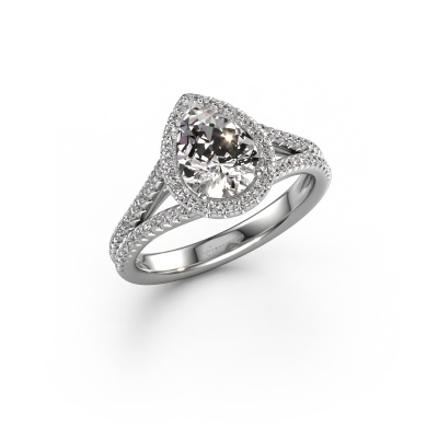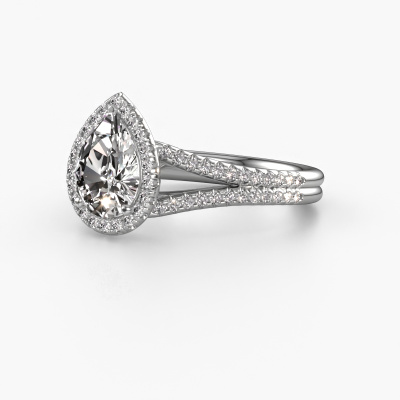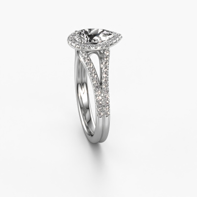The ring shown above is called the Verla pear 2. We call this type of ring a halo ring because it has one centre gemstone and a band that is also pave set with gemstones. The platinum engagement ring is set with a pear 1.00 crt diamond centre stone and the band is pave set with diamonds. What makes this exclusive platinum halo ring special are the smaller sized stones embracing the centre stone. This gorgeous engagement ring is called a halo ring because the smaller gemstones give the centre stone a halo of surrounding light. In order for the smaller stones to enhance the centre stone, they have to be placed so there is no interference of light. And that's when our expert goldsmiths come in. Each individual stone is carefully set in the ring by hand. During manufacturing, light fall is constantly monitored to make sure the special halo is still visible. In the end you get a unique engagement ring, with a diamond of your choosing at its centre. You can imagine the effect of a ring of such significance when you give it to her on her special day to shine. After receiving your order, our goldsmiths will passionately start the creative process of making your engagement ring in our own studio. Because we don't have a big stockpile, these costs will not be passed on to you. Our pricing is proof of that! We offer top quality jewels at lowest price, guaranteed.Our designers and goldsmiths work together each day, creating new jewels. Perhaps you have found a nice exclusive engagement ring somewhere, which can be used to customize your unique ring. Please feel free to contact us. We will make you an offer, based on a fair price/ quality ratio, which will amaze you.To make it easier for you, we offer a 30 day return policy. Check our terms and conditions.
