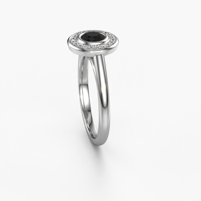 The ring shown above is called the Noud 1 RND. We call this type of ring a halo ring because it has one centre gemstone and a band that is also pave set with gemstones. The platinum promise ring is set with a round 0.48 crt black diamond centre stone and the band is pave set with diamonds. What makes this traditional platinum halo ring special are the smaller sized stones embracing the centre stone. This gorgeous promise ring is called a halo ring because the smaller gemstones give the centre stone a halo of surrounding light. In order for the smaller stones to enhance the centre stone, they have to be placed so there is no interference of light. And that's when our expert goldsmiths come in. Each individual stone is carefully set in the ring by hand. During manufacturing, light fall is constantly monitored to make sure the special halo is still visible. In the end you get a unique promise ring, with a black diamond of your choosing at its centre. You can imagine the effect of a ring of such significance when you give it to her on her special day to shine. By using a combination of the latest modern techniques, combined with ancient crafting, we can make all our promise ring in our own studio. Each jewel is made to order. This is advantageous because we can offer you a price you won't find anywhere else.Do you have a specific ring in mind? One you came across somewhere. Please feel free to tell us your wishes and we will turn your design into a unique promise ring. You can follow the development of your ring design because we use 3D drawings. This gives you a realistic preview of your design. We will gladly send you a non-binding offer, based on a fair price/ quality ratio. It will amaze you.To make it easier for you, we offer a 30 day return policy. Check our terms and conditions.