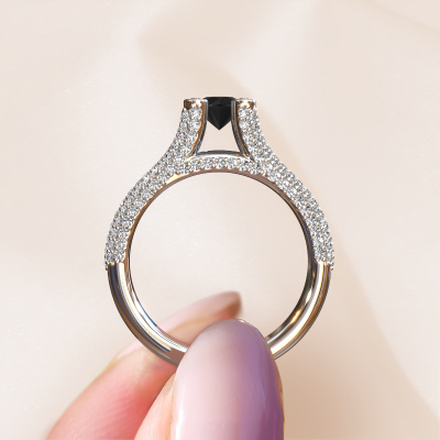 This platinum ring is called Stefanie 2 and is set with 1.60 crt black diamond. Does your girlfriend fancy exclusive jewellery? Or would you like to show her that she deserves the finest jewellery? This platinum ring is pure craftsmanship, love and passion combined with the latest techniques coming together in perfect harmony. It requires a keen eye, patience and a skilful hand to mould this ring into perfection. Just the job for our expert goldsmith! The black diamonds set gemstones gives this platinum ring an extra glamorous appearance. Customize the style of the split band engagement ring to her liking with a wide variety of precious metals and gemstones which you select. That is how you create a unique ring for the most exclusive woman in your life! This jewel is made just for you by our master goldsmiths in our own studio.After receiving your order, our goldsmiths will passionately start the creative process of making your engagement ring in our own studio. Because we don't have a big stockpile, these costs will not be passed on to you. Our pricing is proof of that! We offer top quality jewels at lowest price, guaranteed.Different styles of new rings are made daily by our team. Perhaps you have found a pavé solitaire engagement ring somewhere. One you would like to give to your loved one. Please feel free to share your thoughts and design with our jewel designers. We would love to turn your design into a unique engagement ring. You can follow the development of your ring design because we use very detailed 3D drawings. On top of that, you can order a dummy of the design. A dummy is a plastic ring, which can be shaped according your ring design. You can try it on and check if the engagement ring is up to standard. We will gladly send you a non-binding offer, based on a fair price/ quality ratio. The offer will baffle you, considering the quality of the ring and gemstones.To make it easier for you, we offer a 30 day return policy. Check our terms and conditions.
