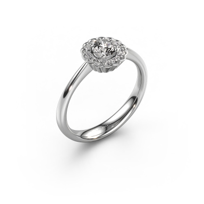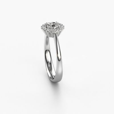 The ring shown above is called the Debi. We call this type of ring a halo ring because it has one centre gemstone and a band that is also pave set with gemstones. The platinum engagement ring is set with a round 0.30 crt diamond centre stone and the band is pave set with diamonds. What makes this classic platinum halo ring special are the smaller sized stones embracing the centre stone. This gorgeous engagement ring is called a halo ring because the smaller gemstones give the centre stone a halo of surrounding light. In order for the smaller stones to enhance the centre stone, they have to be placed so there is no interference of light. And that's when our expert goldsmiths come in. Each individual stone is carefully set in the ring by hand. During manufacturing, light fall is constantly monitored to make sure the special halo is still visible. In the end you get a unique engagement ring, with a diamond of your choosing at its centre. You can imagine the effect of a ring of such significance when you give it to her on her special day to shine. Because we design and deliver our own rings, we can offer you a engagement ring at a price you won't find anywhere else. A ring is made to order, which helps prevent excess supplies, so we can make you a great price offer. We understand it feels risky, buying your engagement ring online, but we will gladly assist in the designing process, taking your budget into consideration.Our team adds new designs to our online collection daily. Our designers and goldsmiths work together in creating the best design. We strive to offer a diverse collection of jewels. Perhaps you have a specific jewel design in mind. One you came across somewhere. Please contact us for a free consultation. We will make you an offer, based on a fair price/ quality ratio, that will baffle you.To make it easier for you, we offer a 30 day return policy. Check our terms and conditions.