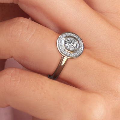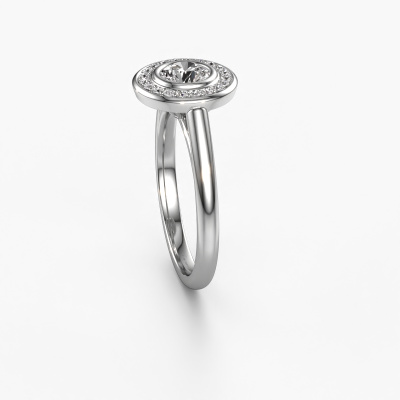 The ring shown above is called the Noud 1 RND. We call this type of ring a halo ring because it has one centre gemstone and a band that is also pave set with gemstones. The platinum promise ring is set with a round 0.50 crt diamond centre stone and the band is pave set with diamonds. What makes this traditional platinum halo ring special are the smaller sized stones embracing the centre stone. This gorgeous promise ring is called a halo ring because the smaller gemstones give the centre stone a halo of surrounding light. In order for the smaller stones to enhance the centre stone, they have to be placed so there is no interference of light. And that's when our expert goldsmiths come in. Each individual stone is carefully set in the ring by hand. During manufacturing, light fall is constantly monitored to make sure the special halo is still visible. In the end you get a unique promise ring, with a diamond of your choosing at its centre. You can imagine the effect of a ring of such significance when you give it to her on her special day to shine. By using a combination of the latest modern techniques, combined with ancient crafting, we can make all our promise ring in our own studio. Each jewel is made to order. This is advantageous because we can offer you a price you won't find anywhere else.Do you have a specific ring in mind? One you came across somewhere. Please feel free to tell us your wishes and we will turn your design into a unique promise ring. You can follow the development of your ring design because we use 3D drawings. This gives you a realistic preview of your design. We will gladly send you a non-binding offer, based on a fair price/ quality ratio. It will amaze you.To make it easier for you, we offer a 30 day return policy. Check our terms and conditions.