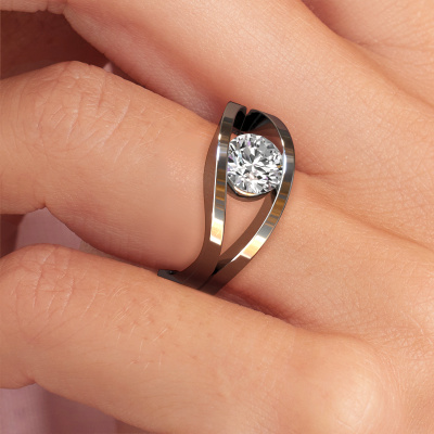 This platinum ring is called Sigrid 1 and is set with 1.00 crt diamond. This design platinum engagement ring is a true masterpiece! Our expert goldsmith uses special techniques during crafting of this tension set ring to make sure the diamond of this platinum ring is fixed properly. The effect is that light fall reflects beautifully on the gemstone, which gives the ring its maximum shine and glamorous appearance. The result is a unique ring, with a trendy appearance, passionately handcrafted to perfection by our artisan goldsmith. A one-of-a-kind ring, designed for the love of your life! This jewel is made to shine bright around your finger. Each jewel is hand made with love by our goldsmiths.By using our modern techniques, we can design and customize the finest quality jewels with the utmost care for you. Our engagement rings are always priced 30 percent lower than other jewellers. We make engagement rings to order so we don't have to maintain a large stock. If you have a certain budget, we are more than happy to advice you accordingly.Different styles of new rings are made daily by our team. Perhaps you have found a solitaire engagement ring somewhere. One you would like to give to your loved one. Please feel free to share your thoughts and design with our jewel designers. We would love to turn your design into a design engagement ring. You can follow the development of your ring design because we use very detailed 3D drawings. On top of that, you can order a dummy of the design. A dummy is a plastic ring, which can be shaped according your ring design. You can try it on and check if the engagement ring is up to standard. We will gladly send you a non-binding offer, based on a fair price/ quality ratio. The offer will baffle you, considering the quality of the ring and gemstones.To make it easier for you, we offer a 30 day return policy. Check our terms and conditions.