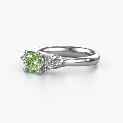 This platinum ring is called Monika RND and is set with 5.5 mm green lab grown diamond. Does your girlfriend fancy exclusive jewellery? Or would you like to show her that she deserves the finest jewellery? This platinum ring is pure craftsmanship, love and passion combined with the latest techniques coming together in perfect harmony. It requires a keen eye, patience and a skilful hand to mould this ring into perfection. Just the job for our expert goldsmith! The green lab grown diamonds set gemstones gives this platinum ring an extra glamorous appearance. Customize the style of the ajour engagement ring to her liking with a wide variety of precious metals and gemstones which you select. That is how you create a unique ring for the most exclusive woman in your life! This jewel is made with passion and love by one of our master goldsmiths.Are you on a budget? Please feel free to contact us, so we can go discuss your options. We offer our engagement rings at guaranteed best price, because we make them to order. You won't find such a price anywhere else!Have you found a specific engagement ring somewhere which you would like to give to your loved one? Please feel free to express your wishes to our jewel designers because we would be honoured to turn your design into a classic engagement ring. You can follow the development of your ring design because we use 3D drawings. This gives you a realistic preview of how your design will look. You can also preorder a dummy. A dummy is a plastic ring, which can be shaped according your ring design. You can try it on and check if its width and size are suitable for you. We will gladly send you a non-binding offer, based on a fair price/ quality ratio. It will amaze you, considering the quality of the ring and gemstones.To make it easier for you, we offer a 30 day return policy. Check our terms and conditions.