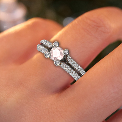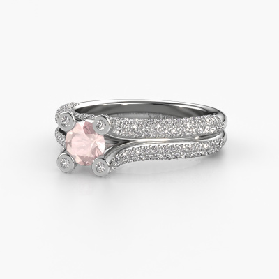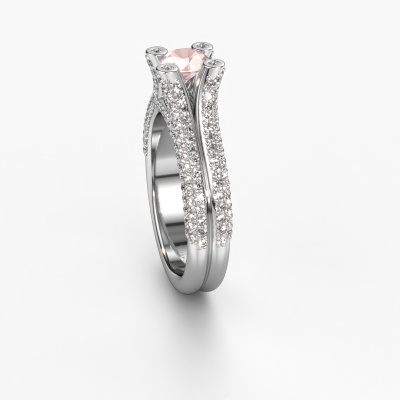 This platinum ring is called Stefanie 2 and is set with 5 mm morganite champagne. Does your girlfriend fancy exclusive jewellery? Or would you like to show her that she deserves the finest jewellery? This platinum ring is pure craftsmanship, love and passion combined with the latest techniques coming together in perfect harmony. It requires a keen eye, patience and a skilful hand to mould this ring into perfection. Just the job for our expert goldsmith! The morganite champagne set gemstones gives this platinum ring an extra glamorous appearance. Customize the style of the split band engagement ring to her liking with a wide variety of precious metals and gemstones which you select. That is how you create a unique ring for the most exclusive woman in your life! This jewel is made just for you by our master goldsmiths in our own studio.After receiving your order, our goldsmiths will passionately start the creative process of making your engagement ring in our own studio. Because we don't have a big stockpile, these costs will not be passed on to you. Our pricing is proof of that! We offer top quality jewels at lowest price, guaranteed.Different styles of new rings are made daily by our team. Perhaps you have found a pavé solitaire engagement ring somewhere. One you would like to give to your loved one. Please feel free to share your thoughts and design with our jewel designers. We would love to turn your design into a unique engagement ring. You can follow the development of your ring design because we use very detailed 3D drawings. On top of that, you can order a dummy of the design. A dummy is a plastic ring, which can be shaped according your ring design. You can try it on and check if the engagement ring is up to standard. We will gladly send you a non-binding offer, based on a fair price/ quality ratio. The offer will baffle you, considering the quality of the ring and gemstones.To make it easier for you, we offer a 30 day return policy. Check our terms and conditions.