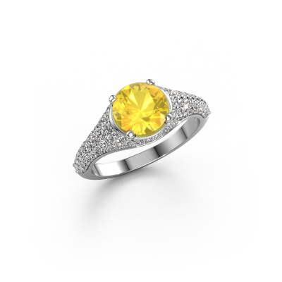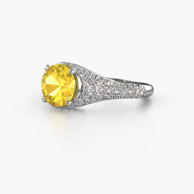 This platinum ring is called Lovella and is set with 7 mm yellow sapphire. Does your girlfriend fancy exclusive jewellery? Or would you like to show her that she deserves the finest jewellery? This platinum ring is pure craftsmanship, love and passion combined with the latest techniques coming together in perfect harmony. It requires a keen eye, patience and a skilful hand to mould this ring into perfection. Just the job for our expert goldsmith! The yellow sapphire set gemstones gives this platinum ring an extra glamorous appearance. Customize the style of the micro pave engagement ring to her liking with a wide variety of precious metals and gemstones which you select. That is how you create a unique ring for the most exclusive woman in your life! This jewel is made just for you, with attention to detail and design.By using a combination of the latest modern techniques, combined with ancient crafting, we can make all our engagement rings in our own studio. Each jewel is made to order. This is advantageous because we can offer you a price you won't find anywhere else.Our team adds new designs to our online collection daily. Our designers and goldsmiths work together in creating the best design. We strive to offer a diverse collection of jewels. Perhaps you have a specific jewel design in mind. One you came across somewhere. Please contact us for a free consultation. We will make you an offer, based on a fair price/ quality ratio, that will baffle you.To make it easier for you, we offer a 30 day return policy. Check our terms and conditions.
