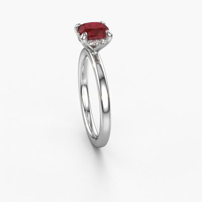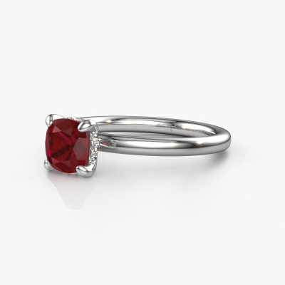 This platinum ring is called Simone CUS 2 and is set with ruby. Are you in the market for a unique platinum engagement ring with a trendy appearance? Then this ring is perfect for you. Simply customize to your or her liking. This unique graceful engagement ring is set with exquisite ruby. It has been carefully selected because your engagement ring must be adorned with nothing but the most beautiful gemstone. Our expert goldsmith will create your ring in our own studio where the ruby will be set with great care. The ring will then be polished to perfection to give it that extra sparkle. The perfect ring for your significant other! By using a combination of the latest modern techniques, combined with ancient crafting, we can make all our engagement rings in our own studio. Each jewel is made to order. This is advantageous because we can offer you a price you won't find anywhere else.Our team adds new designs to our online collection daily. Our designers and goldsmiths work together in creating the best design. We strive to offer a diverse collection of jewels. Perhaps you have a specific jewel design in mind. One you came across somewhere. Please contact us for a free consultation. We will make you an offer, based on a fair price/ quality ratio, that will baffle you.To make it easier for you, we offer a 30 day return policy. Check our terms and conditions.