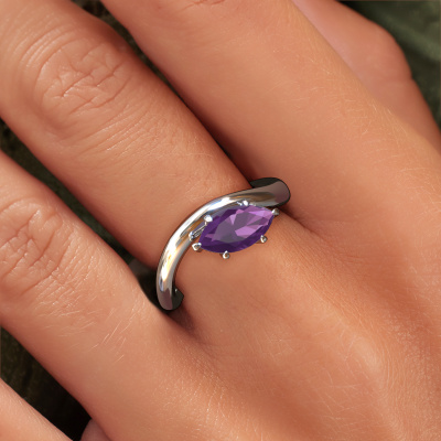This platinum ring is called Chloe MRQ and is set with amethyst. Are you in the market for a unique platinum engagement ring with a trendy appearance? Then this ring is perfect for you. Simply customize to your or her liking. This modern twist