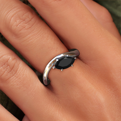 This platinum ring is called Chloe MRQ and is set with black diamond. Are you in the market for a unique platinum engagement ring with a trendy appearance? Then this ring is perfect for you. Simply customize to your or her liking. This modern twist
