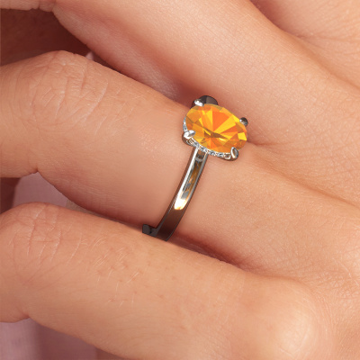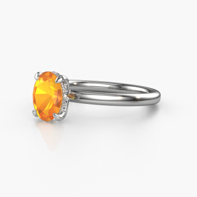 This platinum ring is called Simone OVL 2 and is set with citrin. Are you in the market for a unique platinum engagement ring with a trendy appearance? Then this ring is perfect for you. Simply customize to your or her liking. This contemporary graceful engagement ring is set with exquisite citrin. It has been carefully selected because your engagement ring must be adorned with nothing but the most beautiful gemstone. Our expert goldsmith will create your ring in our own studio where the citrin will be set with great care. The ring will then be polished to perfection to give it that extra sparkle. The perfect ring for your significant other! Because we design and deliver our own rings, we can offer you a engagement ring at a price you won't find anywhere else. A ring is made to order, which helps prevent excess supplies, so we can make you a great price offer. We understand it feels risky, buying your engagement ring online, but we will gladly assist in the designing process, taking your budget into consideration.Do you have a specific ring in mind? One you came across somewhere. Please feel free to tell us your wishes and we will turn your design into a unique engagement ring. You can follow the development of your ring design because we use 3D drawings. This gives you a realistic preview of your design. We will gladly send you a non-binding offer, based on a fair price/ quality ratio. It will amaze you.To make it easier for you, we offer a 30 day return policy. Check our terms and conditions.