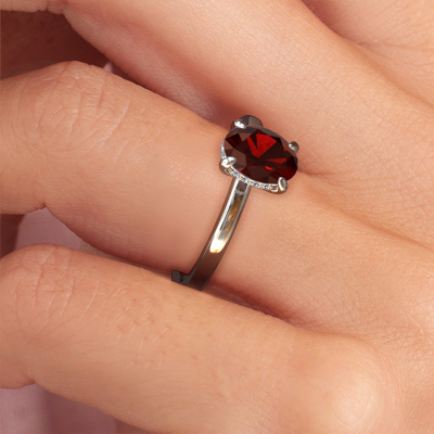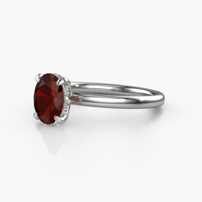 This platinum ring is called Simone OVL 2 and is set with garnet. Are you in the market for a unique platinum engagement ring with a trendy appearance? Then this ring is perfect for you. Simply customize to your or her liking. This contemporary graceful engagement ring is set with exquisite garnet. It has been carefully selected because your engagement ring must be adorned with nothing but the most beautiful gemstone. Our expert goldsmith will create your ring in our own studio where the garnet will be set with great care. The ring will then be polished to perfection to give it that extra sparkle. The perfect ring for your significant other! Because we design and deliver our own rings, we can offer you a engagement ring at a price you won't find anywhere else. A ring is made to order, which helps prevent excess supplies, so we can make you a great price offer. We understand it feels risky, buying your engagement ring online, but we will gladly assist in the designing process, taking your budget into consideration.Do you have a specific ring in mind? One you came across somewhere. Please feel free to tell us your wishes and we will turn your design into a unique engagement ring. You can follow the development of your ring design because we use 3D drawings. This gives you a realistic preview of your design. We will gladly send you a non-binding offer, based on a fair price/ quality ratio. It will amaze you.To make it easier for you, we offer a 30 day return policy. Check our terms and conditions.