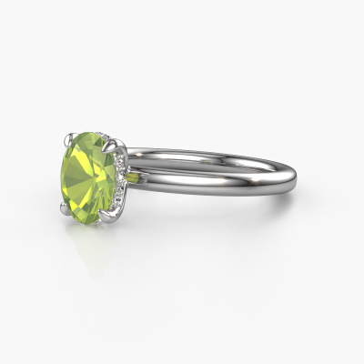This platinum ring is called Simone OVL 2 and is set with peridot. Are you in the market for a unique platinum engagement ring with a trendy appearance? Then this ring is perfect for you. Simply customize to your or her liking. This contemporary graceful engagement ring is set with exquisite peridot. It has been carefully selected because your engagement ring must be adorned with nothing but the most beautiful gemstone. Our expert goldsmith will create your ring in our own studio where the peridot will be set with great care. The ring will then be polished to perfection to give it that extra sparkle. The perfect ring for your significant other! Because we design and deliver our own rings, we can offer you a engagement ring at a price you won't find anywhere else. A ring is made to order, which helps prevent excess supplies, so we can make you a great price offer. We understand it feels risky, buying your engagement ring online, but we will gladly assist in the designing process, taking your budget into consideration.Do you have a specific ring in mind? One you came across somewhere. Please feel free to tell us your wishes and we will turn your design into a unique engagement ring. You can follow the development of your ring design because we use 3D drawings. This gives you a realistic preview of your design. We will gladly send you a non-binding offer, based on a fair price/ quality ratio. It will amaze you.To make it easier for you, we offer a 30 day return policy. Check our terms and conditions.