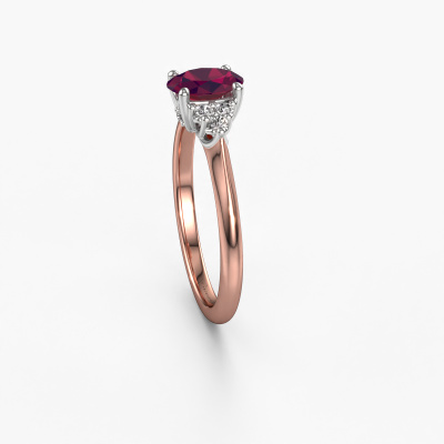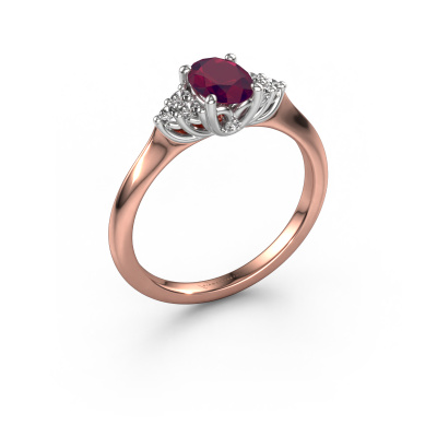 This 14 Carat rose gold ring is called Felipa OVL and is set with rhodolite. How would you describe the style of the love of your life? Does she have a unique sense of style? This stunning graceful rose gold engagement ring can be custom-made to your own or her liking. Our rhodolite gemstones have been carefully selected because we believe your traditional engagement ring must be adorned with nothing but the most beautiful gemstone. Don't you agree? This jewel is made just for you by our master goldsmiths in our own studio.By using our modern techniques, we can design and customize the finest quality jewels with the utmost care for you. Our engagement rings are always priced 30 percent lower than other jewellers. We make engagement rings to order so we don't have to maintain a large stock. If you have a certain budget, we are more than happy to advice you accordingly.Have you found a specific engagement ring somewhere which you would like to give to your loved one? Please feel free to express your wishes to our jewel designers because we would be honoured to turn your design into a traditional engagement ring. You can follow the development of your ring design because we use 3D drawings. This gives you a realistic preview of how your design will look. You can also preorder a dummy. A dummy is a plastic ring, which can be shaped according your ring design. You can try it on and check if its width and size are suitable for you. We will gladly send you a non-binding offer, based on a fair price/ quality ratio. It will amaze you, considering the quality of the ring and gemstones.To make it easier for you, we offer a 30 day return policy. Check our terms and conditions.