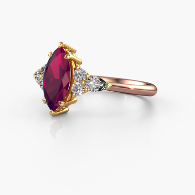This 14 Carat rose gold ring is called Melani MRQ and is set with 11x5.5 mm rhodolite. What is it that makes your relationship unique? What is it about her that makes you want to bend down on one knee? The unique bond between the two of you is emphasized by an equally unique ring. A one of a kind graceful cluster engagement ring made especially for her. That is why this trendy ring fits her like a glove. Each specific detail of this graceful rose gold rhodolite set engagement ring is hand-picked, crafted and polished by our expert goldsmith. The result is an exquisite ring, unique and perfectly crafted to perfection. That is what our expert Goldsmiths strive for. This jewel is made just for you, with attention to detail and design.After receiving your order, our goldsmiths will passionately start the creative process of making your engagement ring in our own studio. Because we don't have a big stockpile, these costs will not be passed on to you. Our pricing is proof of that! We offer top quality jewels at lowest price, guaranteed.Do you have a specific ring in mind? One you came across somewhere. Please feel free to tell us your wishes and we will turn your design into a unique engagement ring. You can follow the development of your ring design because we use 3D drawings. This gives you a realistic preview of your design. We will gladly send you a non-binding offer, based on a fair price/ quality ratio. It will amaze you.To make it easier for you, we offer a 30 day return policy. Check our terms and conditions.