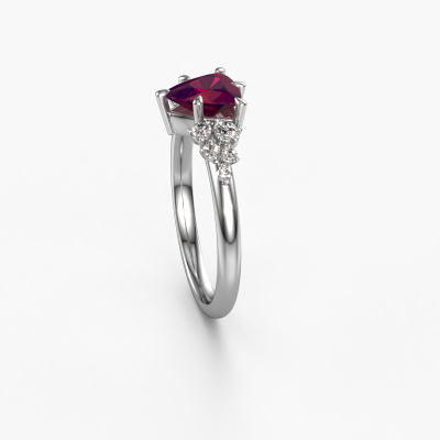 This platinum ring is called Royce TRI and is set with rhodolite. How would you describe the style of the love of your life? Does she have a unique sense of style? This stunning pretty platinum engagement ring can be custom-made to your own or her