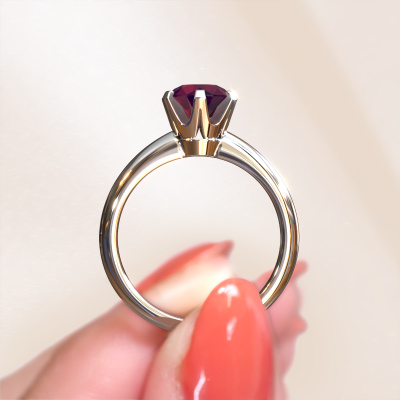 The ring shown above is called the Tiffy 1, we call this a solitaire ring because it contains a single gemstone. The engagement ring is made in platinum and has a round rhodolite of 7 mm. The cool thing about our configurator is that you can compile your own piece of jewellery, into a completely personalized one. This solitaire ring is crafted in the precious metals platinum with platinum, but of course you are free to pick your own colours. Each piece of jewellery is made just for you, with attention to detail and design.The solitaire ring is a special type of engagement ring. Its open prong setting allows light to strike the gemstone from various angles. This classic engagement ring is a stunning eye-catcher because of the high positioning of the gemstone. In order for you to commemorate your proposal with a unique ring, we carefully adorn this solitaire ring by hand. The love of your life deserves nothing but the best. By using our modern techniques, we can design and customize the finest quality jewels with the utmost care for you. Our engagement rings are always priced 30 percent lower than other jewellers. We make engagement rings to order so we don't have to maintain a large stock. If you have a certain budget, we are more than happy to advice you accordingly.Our designers and goldsmiths work together each day, creating new jewels. Perhaps you have found a nice classic engagement ring somewhere, which can be used to customize your unique ring. Please feel free to contact us. We will make you an offer, based on a fair price/ quality ratio, which will amaze you.To make it easier for you, we offer a 30 day return policy. Check our terms and conditions.