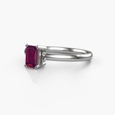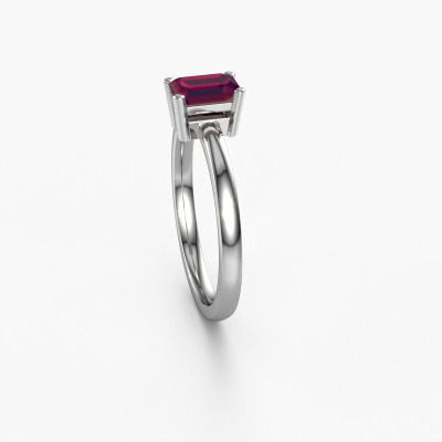 The ring shown above is called the Denita 1 EME, we call this a solitaire ring because it contains a single gemstone. The engagement ring is made in platinum and has a emerald cut rhodolite of 6x4 mm. The cool thing about our configurator is that you can compile your own piece of jewellery, into a completely personalized one. This solitaire ring is crafted in the precious metals platinum with platinum, but of course you are free to pick your own colours. Each piece of jewellery is made by a team of passionate goldsmiths and jewel designers. This will make your crown jewel truly eye-catching.The solitaire ring is a special type of engagement ring. Its open prong setting allows light to strike the gemstone from various angles. This contemporary engagement ring is a stunning eye-catcher because of the high positioning of the gemstone. In order for you to commemorate your proposal with a unique ring, we carefully adorn this solitaire ring by hand. The love of your life deserves nothing but the best. By using a combination of the latest modern techniques, combined with ancient crafting, we can make all our engagement rings in our own studio. Each jewel is made to order. This is advantageous because we can offer you a price you won't find anywhere else.Our team adds new designs to our online collection daily. Our designers and goldsmiths work together in creating the best design. We strive to offer a diverse collection of jewels. Perhaps you have a specific jewel design in mind. One you came across somewhere. Please contact us for a free consultation. We will make you an offer, based on a fair price/ quality ratio, that will baffle you.To make it easier for you, we offer a 30 day return policy. Check our terms and conditions.