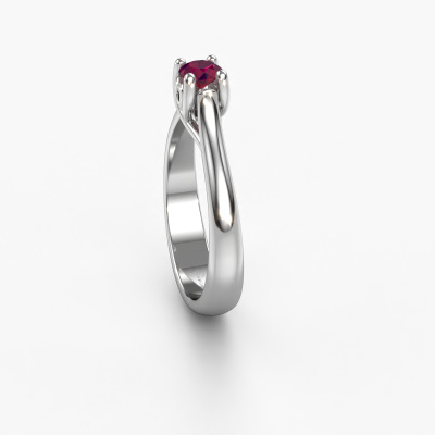 The ring shown above is called the Nisa, we call this a solitaire ring because it contains a single gemstone. The engagement ring is made in platinum and has a round rhodolite of 4.2 mm. The cool thing about our configurator is that you can compile your own piece of jewellery, into a completely personalized one. This solitaire ring is crafted in the precious metals platinum with platinum, but of course you are free to pick your own colours. Each piece of jewellery is made by a team of passionate goldsmiths and jewel designers. This will make your crown jewel truly eye-catching.The solitaire ring is a special type of engagement ring. Its open prong setting allows light to strike the gemstone from various angles. This unique engagement ring is a stunning eye-catcher because of the high positioning of the gemstone. In order for you to commemorate your proposal with a unique ring, we carefully adorn this solitaire ring by hand. The love of your life deserves nothing but the best. Are you on a budget? Please feel free to contact us, so we can go discuss your options. We offer our engagement rings at guaranteed best price, because we make them to order. You won't find such a price anywhere else!Our designers and goldsmiths work together each day, creating new jewels. Perhaps you have found a nice unique engagement ring somewhere, which can be used to customize your unique ring. Please feel free to contact us. We will make you an offer, based on a fair price/ quality ratio, which will amaze you.To make it easier for you, we offer a 30 day return policy. Check our terms and conditions.