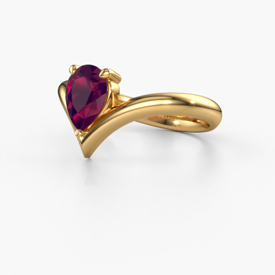 In your eyes, no one else compares to her. She is one in a million, unlike anyone else and pure? These qualities are emphasized perfectly by our modern gold solitaire rhodolite ring. This rhodolite is carefully selected by our keen artisan goldsmiths. It equals the unique qualities of the love of your life. There is no better way to memorialize your proposal than this symbol of true love. The ring shown above is called the Maddy PER, we call this a solitaire ring because it contains a single gemstone. The engagement ring is made in 14 Carat gold and has a pear rhodolite of 8x6 mm. Each piece of jewellery is made with passion and love by one of our master goldsmiths.After receiving your order, our goldsmiths will passionately start the creative process of making your engagement ring in our own studio. Because we don't have a big stockpile, these costs will not be passed on to you. Our pricing is proof of that! We offer top quality jewels at lowest price, guaranteed.Our team adds new designs to our online collection daily. Our designers and goldsmiths work together in creating the best design. We strive to offer a diverse collection of jewels. Perhaps you have a specific jewel design in mind. One you came across somewhere. Please contact us for a free consultation. We will make you an offer, based on a fair price/ quality ratio, that will baffle you.To make it easier for you, we offer a 30 day return policy. Check our terms and conditions.