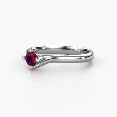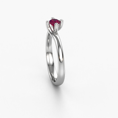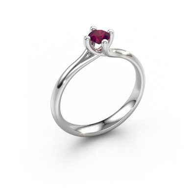 In your eyes, no one else compares to her. She is one in a million, unlike anyone else and pure? These qualities are emphasized perfectly by our modern platinum solitaire rhodolite ring. This rhodolite is carefully selected by our keen artisan goldsmiths. It equals the unique qualities of the love of your life. There is no better way to memorialize your proposal than this symbol of true love. The ring shown above is called the Dewi Round, we call this a solitaire ring because it contains a single gemstone. The engagement ring is made in platinum and has a round rhodolite of 4 mm. Each piece of jewellery is made to shine bright around your finger. Each jewel is hand made with love by our goldsmiths.After receiving your order, our goldsmiths will passionately start the creative process of making your engagement ring in our own studio. Because we don't have a big stockpile, these costs will not be passed on to you. Our pricing is proof of that! We offer top quality jewels at lowest price, guaranteed.Different styles of new rings are made daily by our team. Perhaps you have found a solitaire engagement ring somewhere. One you would like to give to your loved one. Please feel free to share your thoughts and design with our jewel designers. We would love to turn your design into a modern engagement ring. You can follow the development of your ring design because we use very detailed 3D drawings. On top of that, you can order a dummy of the design. A dummy is a plastic ring, which can be shaped according your ring design. You can try it on and check if the engagement ring is up to standard. We will gladly send you a non-binding offer, based on a fair price/ quality ratio. The offer will baffle you, considering the quality of the ring and gemstones.To make it easier for you, we offer a 30 day return policy. Check our terms and conditions.