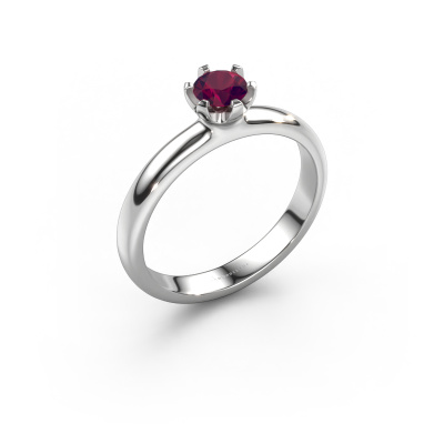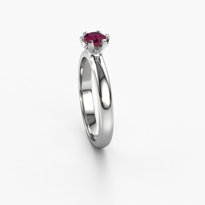 In your eyes, no one else compares to her. She is one in a million, unlike anyone else and pure? These qualities are emphasized perfectly by our modern platinum solitaire rhodolite ring. This rhodolite is carefully selected by our keen artisan goldsmiths. It equals the unique qualities of the love of your life. There is no better way to memorialize your proposal than this symbol of true love. The ring shown above is called the Lorretta, we call this a solitaire ring because it contains a single gemstone. The engagement ring is made in platinum and has a round rhodolite of 4.7 mm. Each piece of jewellery is made with passion and love by one of our master goldsmiths.By using a combination of the latest modern techniques, combined with ancient crafting, we can make all our engagement rings in our own studio. Each jewel is made to order. This is advantageous because we can offer you a price you won't find anywhere else.Our team adds new designs to our online collection daily. Our designers and goldsmiths work together in creating the best design. We strive to offer a diverse collection of jewels. Perhaps you have a specific jewel design in mind. One you came across somewhere. Please contact us for a free consultation. We will make you an offer, based on a fair price/ quality ratio, that will baffle you.To make it easier for you, we offer a 30 day return policy. Check our terms and conditions.