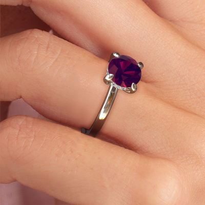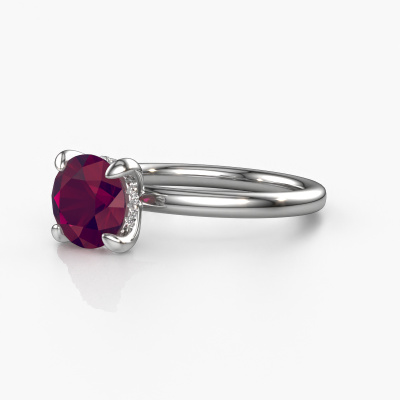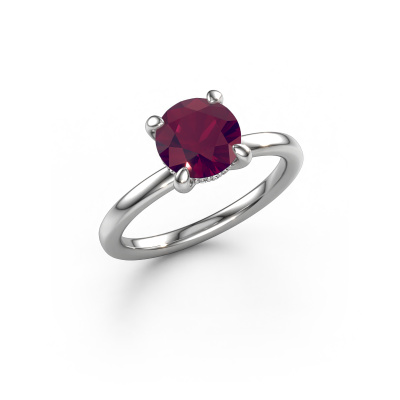 In your eyes, no one else compares to her. She is one in a million, unlike anyone else and pure? These qualities are emphasized perfectly by our exclusive white gold solitaire rhodolite ring. This rhodolite is carefully selected by our keen artisan goldsmiths. It equals the unique qualities of the love of your life. There is no better way to memorialize your proposal than this symbol of true love. The ring shown above is called the Simone RND 2, we call this a solitaire ring because it contains a single gemstone. The engagement ring is made in 14 Carat white gold and has a round rhodolite of 7.3 mm. Each piece of jewellery is unique in every way! Simply customize to your liking,After receiving your order, our goldsmiths will passionately start the creative process of making your engagement ring in our own studio. Because we don't have a big stockpile, these costs will not be passed on to you. Our pricing is proof of that! We offer top quality jewels at lowest price, guaranteed.Our team adds new designs to our online collection daily. Our designers and goldsmiths work together in creating the best design. We strive to offer a diverse collection of jewels. Perhaps you have a specific jewel design in mind. One you came across somewhere. Please contact us for a free consultation. We will make you an offer, based on a fair price/ quality ratio, that will baffle you.To make it easier for you, we offer a 30 day return policy. Check our terms and conditions.