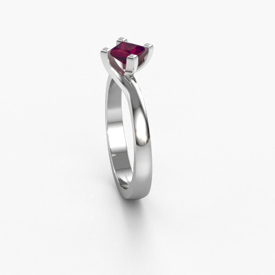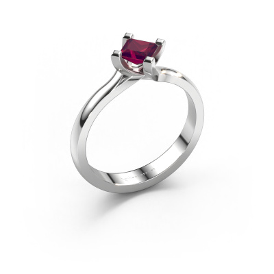 In your eyes, no one else compares to her. She is one in a million, unlike anyone else and pure? These qualities are emphasized perfectly by our modern white gold solitaire rhodolite ring. This rhodolite is carefully selected by our keen artisan goldsmiths. It equals the unique qualities of the love of your life. There is no better way to memorialize your proposal than this symbol of true love. The ring shown above is called the Dewi Square, we call this a solitaire ring because it contains a single gemstone. The Engagement ring is made in 14 Carat white gold and has a princess rhodolite of 4 mm. Each piece of jewellery is made just for you by our master goldsmiths in our own studio.By using a combination of the latest modern techniques, combined with ancient crafting, we can make all our Engagement rings in our own studio. Each jewel is made to order. This is advantageous because we can offer you a price you won't find anywhere else.Our designers and goldsmiths work together each day, creating new jewels. Perhaps you have found a nice modern Engagement ring somewhere, which can be used to customize your unique ring. Please feel free to contact us. We will make you an offer, based on a fair price/ quality ratio, which will amaze you.To make it easier for you, we offer a 30 day return policy. Check our terms and conditions.