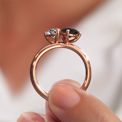 This 14 Carat rose gold ring is called Toi et Moi PER-PER and is set with black diamond. Are you in the market for a unique rose gold engagement ring with a trendy appearance? Then this ring is perfect for you. Simply customize to your or her liking. This fashionable fashionable engagement ring is set with exquisite black diamond. It has been carefully selected because your engagement ring must be adorned with nothing but the most beautiful gemstone. Our expert goldsmith will create your ring in our own studio where the black diamond will be set with great care. The ring will then be polished to perfection to give it that extra sparkle. The perfect ring for your significant other! After receiving your order, our goldsmiths will passionately start the creative process of making your engagement ring in our own studio. Because we don't have a big stockpile, these costs will not be passed on to you. Our pricing is proof of that! We offer top quality jewels at lowest price, guaranteed.Our designers and goldsmiths work together each day, creating new jewels. Perhaps you have found a nice fashionable engagement ring somewhere, which can be used to customize your unique ring. Please feel free to contact us. We will make you an offer, based on a fair price/ quality ratio, which will amaze you.To make it easier for you, we offer a 30 day return policy. Check our terms and conditions.