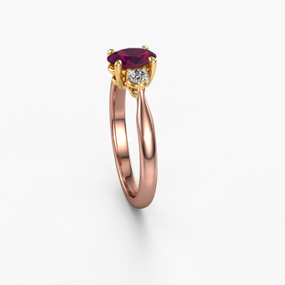 This 14 Carat rose gold ring is called Lieselot OVL and is set with rhodolite. Are you in the market for a unique rose gold engagement ring with a trendy appearance? Then this ring is perfect for you. Simply customize to your or her liking. This contemporary graceful engagement ring is set with exquisite rhodolite. It has been carefully selected because your engagement ring must be adorned with nothing but the most beautiful gemstone. Our expert goldsmith will create your ring in our own studio where the rhodolite will be set with great care. The ring will then be polished to perfection to give it that extra sparkle. The perfect ring for your significant other! By using a combination of the latest modern techniques, combined with ancient crafting, we can make all our engagement rings in our own studio. Each jewel is made to order. This is advantageous because we can offer you a price you won't find anywhere else.Our team adds new designs to our online collection daily. Our designers and goldsmiths work together in creating the best design. We strive to offer a diverse collection of jewels. Perhaps you have a specific jewel design in mind. One you came across somewhere. Please contact us for a free consultation. We will make you an offer, based on a fair price/ quality ratio, that will baffle you.To make it easier for you, we offer a 30 day return policy. Check our terms and conditions.