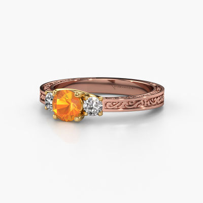This 14 Carat rose gold ring is called Betty 1 and is set with citrin. An extraordinary rose gold vintage ring. One that will surely make the love of your life shine like a diamond! That is what we hope to achieve. This Celtic engagement ring is set with exquisite citrin. Whichever gemstone you choose from our selection, is up to you. The gemstone is selected with great care because we believe your engagement ring must be adorned with nothing but the most beautiful gemstone. Wouldn't you agree? Our expert goldsmith will design your ring in our own artisan studio, where the citrin will be set with great precision. The ring will then be polished till it is absolutely perfect. Nothing but the best for the love of your life! This jewel is created to add sparkle to your finger, each jewel is lovingly made by hand by our goldsmiths.Are you on a budget? Please feel free to contact us, so we can go discuss your options. We offer our engagement rings at guaranteed best price, because we make them to order. You won't find such a price anywhere else!Our team adds new designs to our online collection daily. Our designers and goldsmiths work together in creating the best design. We strive to offer a diverse collection of jewels. Perhaps you have a specific jewel design in mind. One you came across somewhere. Please contact us for a free consultation. We will make you an offer, based on a fair price/ quality ratio, that will baffle you.To make it easier for you, we offer a 30 day return policy. Check our terms and conditions.