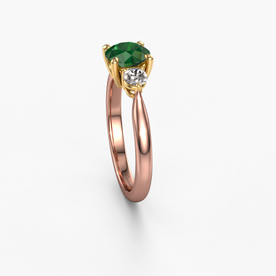 This 14 Carat rose gold ring is called Lieselot RND and is set with 6.5 mm emerald. This filigree rose gold engagement ring is a true work of art! A beautifully adorned design of intricate wires. With dedication, patience and the utmost precision, our expert goldsmith will design a ring just for you. The adornment of small wiring is crafted to perfection by hand. It's a lengthy process which includes welding, crafting and polishing until our Goldsmiths are completely satisfied with the result: a perfect eye-catching ring that makes her shine with delight. Therefore the fantasy filigree engagement ring is an extraordinary gift to bestow upon the love of your life. A handmade one-of-a-kind personalized ring, to be given to that special someone on that special moment when you pop the question. Isn't that wonderful? This piece of jewellery is made just for you by our master goldsmiths in our own studio.Because we design and deliver our own rings, we can offer you a engagement ring at a price you won't find anywhere else. A ring is made to order, which helps prevent excess supplies, so we can make you a great price offer. We understand it feels risky, buying your engagement ring online, but we will gladly assist in the designing process, taking your budget into consideration.Our team adds new designs to our online collection daily. Our designers and goldsmiths work together in creating the best design. We strive to offer a diverse collection of jewels. Perhaps you have a specific jewel design in mind. One you came across somewhere. Please contact us for a free consultation. We will make you an offer, based on a fair price/ quality ratio, that will baffle you.To make it easier for you, we offer a 30 day return policy. Check our terms and conditions.