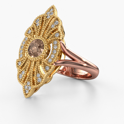 This 14 Carat rose gold ring is called Hanna and is set with 0.667 crt brown diamond. This filigree rose gold engagement ring is a true work of art! A beautifully adorned design of intricate wires. With dedication, patience and the utmost precision, our expert goldsmith will design a ring just for you. The adornment of small wiring is crafted to perfection by hand. It's a lengthy process which includes welding, crafting and polishing until our Goldsmiths are completely satisfied with the result: a perfect eye-catching ring that makes her shine with delight. Therefore the vintage filigree engagement ring is an extraordinary gift to bestow upon the love of your life. A handmade one-of-a-kind personalized ring, to be given to that special someone on that special moment when you pop the question. Isn't that wonderful? This piece of jewellery is created to add sparkle to your finger, each jewel is lovingly made by hand by our goldsmiths.After receiving your order, our goldsmiths will passionately start the creative process of making your engagement ring in our own studio. Because we don't have a big stockpile, these costs will not be passed on to you. Our pricing is proof of that! We offer top quality jewels at lowest price, guaranteed.Our team adds new designs to our online collection daily. Our designers and goldsmiths work together in creating the best design. We strive to offer a diverse collection of jewels. Perhaps you have a specific jewel design in mind. One you came across somewhere. Please contact us for a free consultation. We will make you an offer, based on a fair price/ quality ratio, that will baffle you.To make it easier for you, we offer a 30 day return policy. Check our terms and conditions.