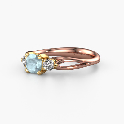This 14 Carat rose gold ring is called Amie cus and is set with 5 mm aquamarine. Does your girlfriend fancy exclusive jewellery? Or would you like to show her that she deserves the finest jewellery? This rose gold ring is pure craftsmanship, love and passion combined with the latest techniques coming together in perfect harmony. It requires a keen eye, patience and a skilful hand to mould this ring into perfection. Just the job for our expert goldsmith! The aquamarine set gemstones gives this rose gold ring an extra glamorous appearance. Customize the style of the ajour engagement ring to her liking with a wide variety of precious metals and gemstones which you select. That is how you create a unique ring for the most exclusive woman in your life! This jewel is made just for you, with attention to detail and design.After receiving your order, our goldsmiths will passionately start the creative process of making your engagement ring in our own studio. Because we don't have a big stockpile, these costs will not be passed on to you. Our pricing is proof of that! We offer top quality jewels at lowest price, guaranteed.Have you found a specific engagement ring somewhere which you would like to give to your loved one? Please feel free to express your wishes to our jewel designers because we would be honoured to turn your design into a fantasy engagement ring. You can follow the development of your ring design because we use 3D drawings. This gives you a realistic preview of how your design will look. You can also preorder a dummy. A dummy is a plastic ring, which can be shaped according your ring design. You can try it on and check if its width and size are suitable for you. We will gladly send you a non-binding offer, based on a fair price/ quality ratio. It will amaze you, considering the quality of the ring and gemstones.To make it easier for you, we offer a 30 day return policy. Check our terms and conditions.