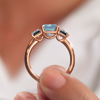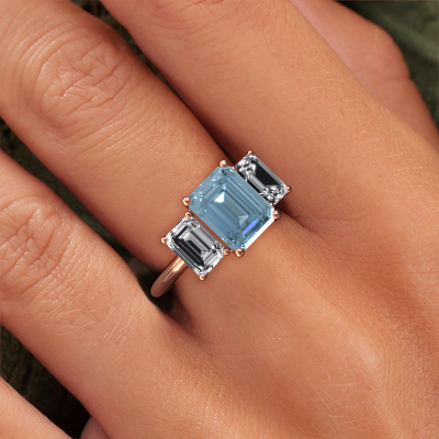This 14 Carat rose gold ring is called Sandra and is set with 9x7 mm blue lab grown diamond. Does your girlfriend fancy exclusive jewellery? Or would you like to show her that she deserves the finest jewellery? This rose gold ring is pure craftsmanship, love and passion combined with the latest techniques coming together in perfect harmony. It requires a keen eye, patience and a skilful hand to mould this ring into perfection. Just the job for our expert goldsmith! The blue lab grown diamonds set gemstones gives this rose gold ring an extra glamorous appearance. Customize the style of the special engagement ring to her liking with a wide variety of precious metals and gemstones which you select. That is how you create a unique ring for the most exclusive woman in your life! This jewel is made just for you by our master goldsmiths in our own studio.Because we design and deliver our own rings, we can offer you a engagement ring at a price you won't find anywhere else. A ring is made to order, which helps prevent excess supplies, so we can make you a great price offer. We understand it feels risky, buying your engagement ring online, but we will gladly assist in the designing process, taking your budget into consideration.Different styles of new rings are made daily by our team. Perhaps you have found a 3-stone engagement ring somewhere. One you would like to give to your loved one. Please feel free to share your thoughts and design with our jewel designers. We would love to turn your design into a exclusive engagement ring. You can follow the development of your ring design because we use very detailed 3D drawings. On top of that, you can order a dummy of the design. A dummy is a plastic ring, which can be shaped according your ring design. You can try it on and check if the engagement ring is up to standard. We will gladly send you a non-binding offer, based on a fair price/ quality ratio. The offer will baffle you, considering the quality of the ring and gemstones.To make it easier for you, we offer a 30 day return policy. Check our terms and conditions.