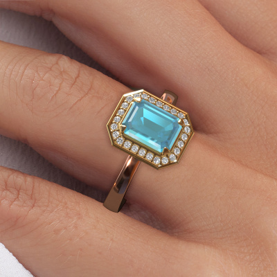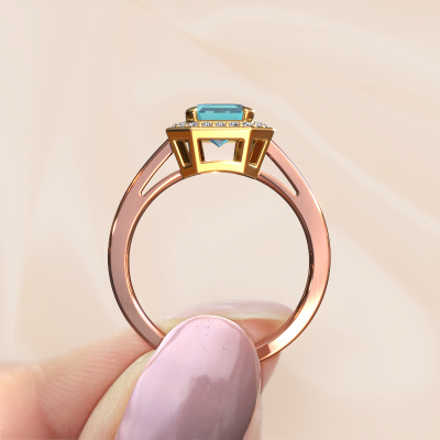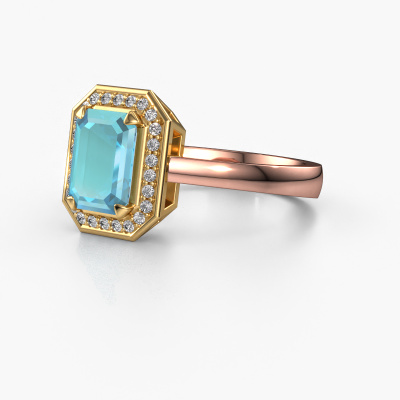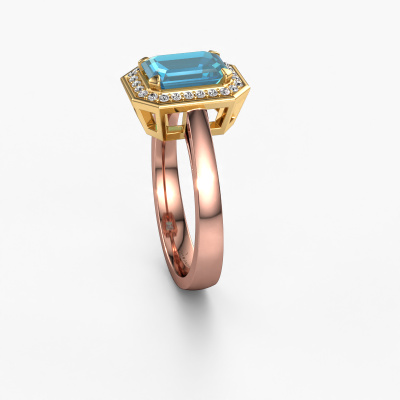 This 14 Carat rose gold ring is called Dodie 1 eme and is set with 8x6 mm blue topaz. Does your girlfriend fancy exclusive jewellery? Or would you like to show her that she deserves the finest jewellery? This rose gold ring is pure craftsmanship, love and passion combined with the latest techniques coming together in perfect harmony. It requires a keen eye, patience and a skilful hand to mould this ring into perfection. Just the job for our expert goldsmith! The blue topaz set gemstones gives this rose gold ring an extra glamorous appearance. Customize the style of the special engagement ring to her liking with a wide variety of precious metals and gemstones which you select. That is how you create a unique ring for the most exclusive woman in your life! This jewel is made to shine bright around your finger. Each jewel is hand made with love by our goldsmiths.After receiving your order, our goldsmiths will start the creative process of making your Dodie 1 eme engagement ring. We don't keep stock. This is advantageous because these costs will not be passed on to you. Therefore, we can offer jewellery at exceptionally low prices.Our team adds new designs to our online collection daily. Our designers and goldsmiths work together in creating the best design. We strive to offer a diverse collection of jewels. Perhaps you have a specific jewel design in mind. One you came across somewhere. Please contact us for a free consultation. We will make you an offer, based on a fair price/ quality ratio, that will baffle you.To make it easier for you, we offer a 30 day return policy. Check our terms and conditions.