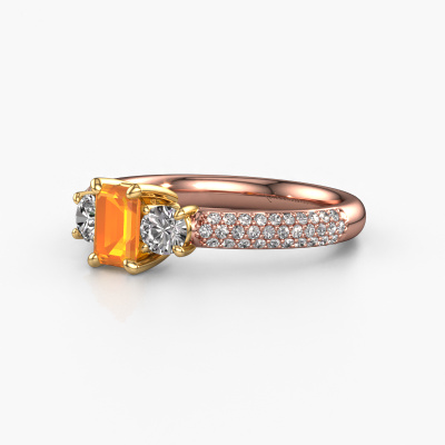 This 14 Carat rose gold ring is called Marielle EME and is set with 6x4 mm citrin. Does your girlfriend fancy exclusive jewellery? Or would you like to show her that she deserves the finest jewellery? This rose gold ring is pure craftsmanship, love and passion combined with the latest techniques coming together in perfect harmony. It requires a keen eye, patience and a skilful hand to mould this ring into perfection. Just the job for our expert goldsmith! The citrin set gemstones gives this rose gold ring an extra glamorous appearance. Customize the style of the special engagement ring to her liking with a wide variety of precious metals and gemstones which you select. That is how you create a unique ring for the most exclusive woman in your life! This jewel is created to add sparkle to your finger, each jewel is lovingly made by hand by our goldsmiths.Because we design and deliver our own rings, we can offer you a engagement ring at a price you won't find anywhere else. A ring is made to order, which helps prevent excess supplies, so we can make you a great price offer. We understand it feels risky, buying your engagement ring online, but we will gladly assist in the designing process, taking your budget into consideration.Our team adds new designs to our online collection daily. Our designers and goldsmiths work together in creating the best design. We strive to offer a diverse collection of jewels. Perhaps you have a specific jewel design in mind. One you came across somewhere. Please contact us for a free consultation. We will make you an offer, based on a fair price/ quality ratio, that will baffle you.To make it easier for you, we offer a 30 day return policy. Check our terms and conditions.