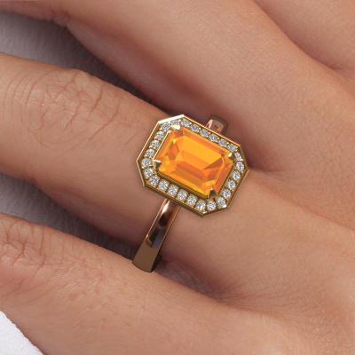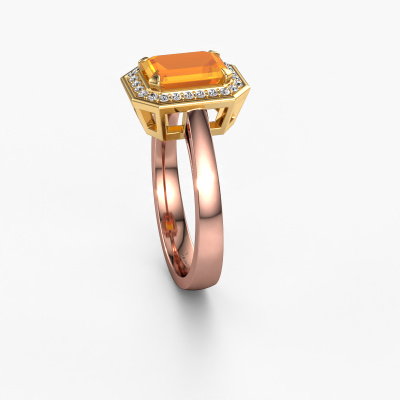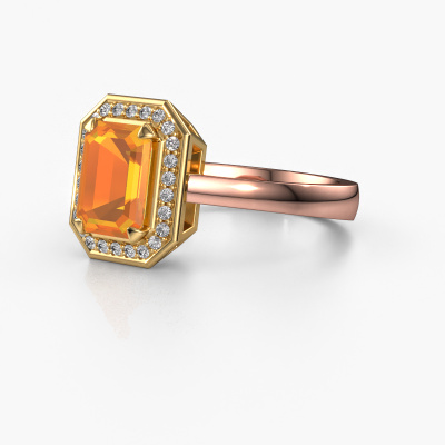 This 14 Carat rose gold ring is called Dodie 1 eme and is set with 8x6 mm citrin. Does your girlfriend fancy exclusive jewellery? Or would you like to show her that she deserves the finest jewellery? This rose gold ring is pure craftsmanship, love and passion combined with the latest techniques coming together in perfect harmony. It requires a keen eye, patience and a skilful hand to mould this ring into perfection. Just the job for our expert goldsmith! The citrin set gemstones gives this rose gold ring an extra glamorous appearance. Customize the style of the special engagement ring to her liking with a wide variety of precious metals and gemstones which you select. That is how you create a unique ring for the most exclusive woman in your life! This jewel is made to shine bright around your finger. Each jewel is hand made with love by our goldsmiths.After receiving your order, our goldsmiths will start the creative process of making your Dodie 1 eme engagement ring. We don't keep stock. This is advantageous because these costs will not be passed on to you. Therefore, we can offer jewellery at exceptionally low prices.Our team adds new designs to our online collection daily. Our designers and goldsmiths work together in creating the best design. We strive to offer a diverse collection of jewels. Perhaps you have a specific jewel design in mind. One you came across somewhere. Please contact us for a free consultation. We will make you an offer, based on a fair price/ quality ratio, that will baffle you.To make it easier for you, we offer a 30 day return policy. Check our terms and conditions.