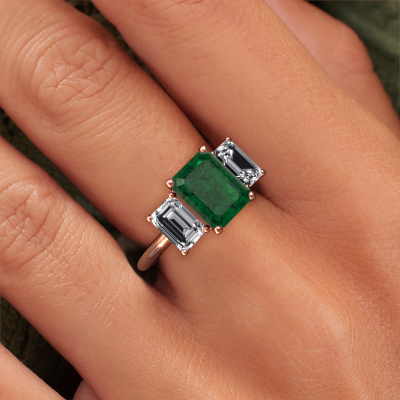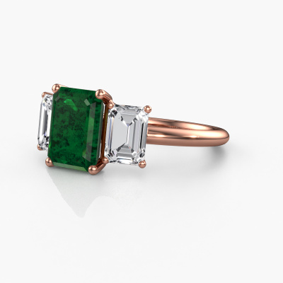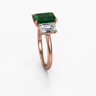 This 14 Carat rose gold ring is called Sandra and is set with 9x7 mm emerald. Does your girlfriend fancy exclusive jewellery? Or would you like to show her that she deserves the finest jewellery? This rose gold ring is pure craftsmanship, love and passion combined with the latest techniques coming together in perfect harmony. It requires a keen eye, patience and a skilful hand to mould this ring into perfection. Just the job for our expert goldsmith! The emerald set gemstones gives this rose gold ring an extra glamorous appearance. Customize the style of the special engagement ring to her liking with a wide variety of precious metals and gemstones which you select. That is how you create a unique ring for the most exclusive woman in your life! This jewel is made just for you by our master goldsmiths in our own studio.Because we design and deliver our own rings, we can offer you a engagement ring at a price you won't find anywhere else. A ring is made to order, which helps prevent excess supplies, so we can make you a great price offer. We understand it feels risky, buying your engagement ring online, but we will gladly assist in the designing process, taking your budget into consideration.Different styles of new rings are made daily by our team. Perhaps you have found a 3-stone engagement ring somewhere. One you would like to give to your loved one. Please feel free to share your thoughts and design with our jewel designers. We would love to turn your design into a exclusive engagement ring. You can follow the development of your ring design because we use very detailed 3D drawings. On top of that, you can order a dummy of the design. A dummy is a plastic ring, which can be shaped according your ring design. You can try it on and check if the engagement ring is up to standard. We will gladly send you a non-binding offer, based on a fair price/ quality ratio. The offer will baffle you, considering the quality of the ring and gemstones.To make it easier for you, we offer a 30 day return policy. Check our terms and conditions.
